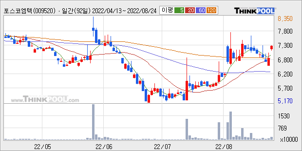 포스코엠텍의 2021년 매출액은 전년대비 26.8% 늘어난 3239억원이고, 영업이익 또한 전년대비 41.1% 늘어난 164억원을 기록했다. 이 회사의 매출액 증감률과 영업이익 증감률은 각각 코스닥 상위 30%, 상위 42%에 해당된다.