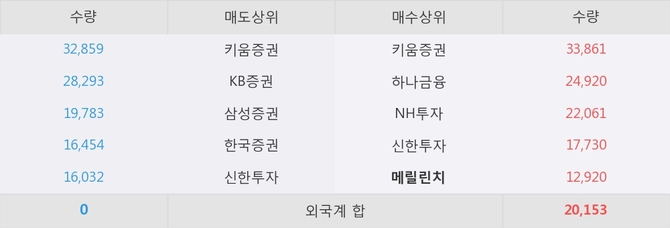 거래원 동향은 메릴린치, 하나금융, NH투자 등이 매수 상위 목록에 나타나고 있다.