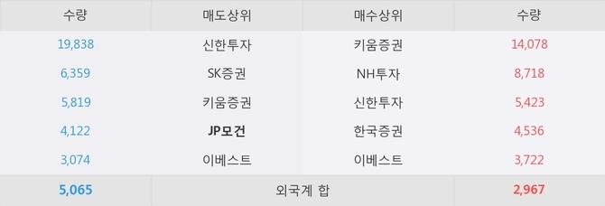 JP모건이 매도상위 창구 4위를 기록중이고, 그 외에 신한투자, SK증권 등이 매도 창구 상위에 위치하고 있다.