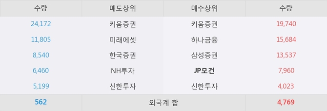 거래원 동향은 JP모건, 하나금융, 삼성증권 등이 매수 상위 목록에 나타나고 있다.