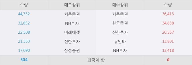 이 시각 주요 거래원은 NH투자, 키움증권, 한국증권 등이 매수 상위 창구에 자리하고 있다.