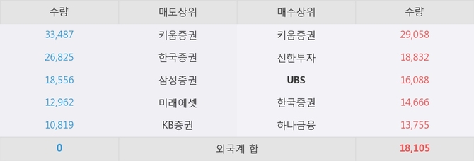 거래원 동향은 UBS, 하나금융이 매수 상위 목록에 나타나고 있다.