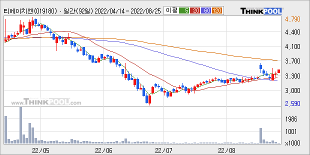 [그래프]티에이치엔 일봉 차트