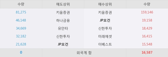 거래원 동향은 JP모건, 미래에셋이 매수 상위 목록에 나타나고 있다. 한편, 매도 창구 상위에는 JP모건이 눈에 띄고 있다.