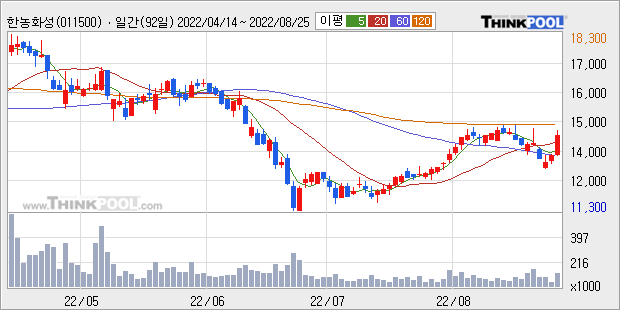 한농화성의 2021년 매출액은 2688억으로 전년대비 29.1% 상승했고, 영업이익 또한 195억으로 전년대비 42.1% 상승했다. 이 회사의 매출액 증감률과 영업이익 증감률은 각각 코스피 상위 23%, 상위 42%에 해당된다.