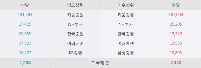 거래원 동향은 NH투자, 미래에셋, 삼성증권 등이 매수 상위 목록에 나타나고 있다.