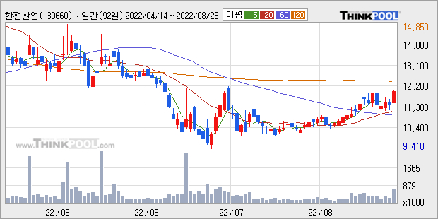 일봉 차트의 모습은 현재 단기·중기 이평선이 정배열 상태로 전형적인 상승세를 보이고 있다. 최근 이 종목의 차트에서 주가 5MA 상향돌파 등의 특이사항이 발생했다.