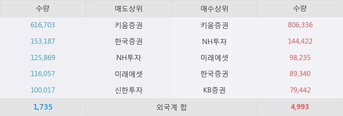 거래원 동향은 NH투자, 미래에셋 등이 매수 상위 목록에 나타나고 있다.