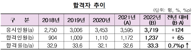 성별로는 여성 합격자가 35.2%로 전년 대비 4.6%p 늘었다.