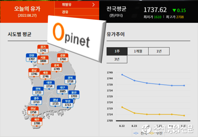 (조세금융신문=구재회 기자) 전국 주유소의 휘발유와 경유 가격이 8주 연속으로 내림세를 나타냈다.