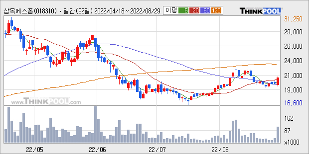 삼목에스폼의 2021년 매출액은 전년대비 76.0% 늘어난 2049억원이고, 영업이익은 흑자전환해서 106억원을 기록했다. 이 회사의 매출액 증감률과 영업이익 증감률은 각각 코스닥 하위 1%, 하위 1%에 해당된다.