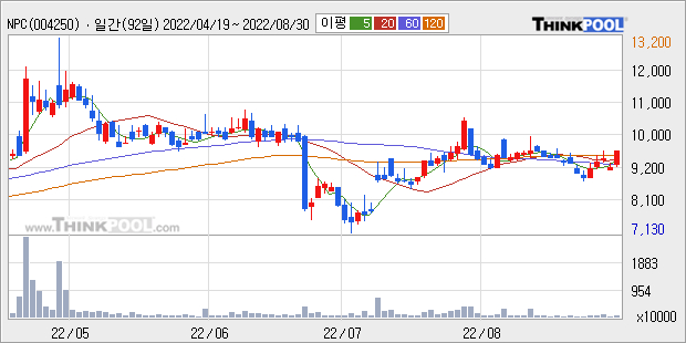 NPC은 2021년 매출액 4869억원과 영업이익 283억원을 기록했다. 전년대비 매출은 12.9%, 영업이익은 36.6% 각각 상승했다. 이 회사의 매출액 증감률과 영업이익 증감률은 각각 코스피 하위 48%, 상위 45%에 해당된다.