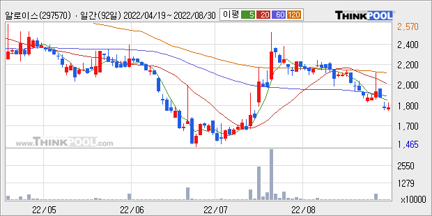 알로이스의 2021년 매출액은 전년대비 43.1% 늘어난 367억원이고, 영업이익 또한 전년대비 58.9% 늘어난 70억원을 기록했다. 이 회사의 매출액 증감률과 영업이익 증감률은 각각 코스닥 상위 16%, 상위 35%에 해당된다.
