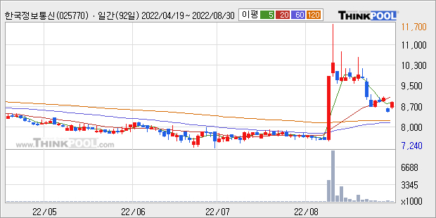 한국정보통신의 2021년 매출액은 5402억으로 전년대비 9.1% 상승했고, 영업이익 또한 236억으로 전년대비 11.8% 상승했다. 이 회사의 매출액 증감률과 영업이익 증감률은 각각 코스닥 하위 42%, 하위 47%에 해당된다.
