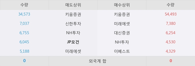 거래원 동향은 미래에셋, NH투자 등이 매수 상위 목록에 나타나고 있다. 한편, 매도 창구 상위에는 JP모건이 눈에 띄고 있다.