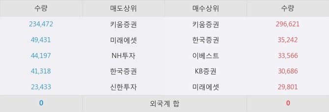 이 시각 주요 거래원은 미래에셋, 키움증권, 한국증권 등이 매수 상위 창구에 자리하고 있다.