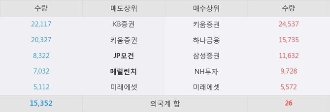 거래원 동향은 JP모건, 메릴린치, 미래에셋 등이 매도 상위 목록에 위치하고 있다.