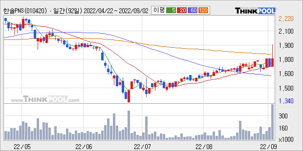 한솔PNS의 2021년 매출액은 전년대비 5.1% 늘어난 2573억원이고, 영업이익 또한 전년대비 10.5% 늘어난 43억원을 기록했다. 이 회사의 매출액 증감률과 영업이익 증감률은 각각 코스피 하위 1%, 하위 1%에 해당된다.