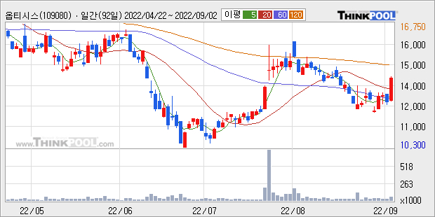 옵티시스는 2021년 매출액 242억원과 영업이익 42억원을 기록했다. 전년대비 매출은 18.4%, 영업이익은 170.1% 각각 상승했다. 이 회사의 매출액 증감률과 영업이익 증감률은 각각 코스닥 상위 41%, 상위 16%에 해당된다.
