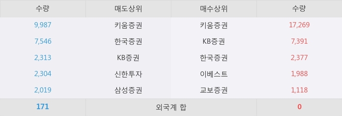 현재 거래원 동향은 키움증권, KB증권, 한국증권 등이 매수 상위 목록에 나타나고 있다.