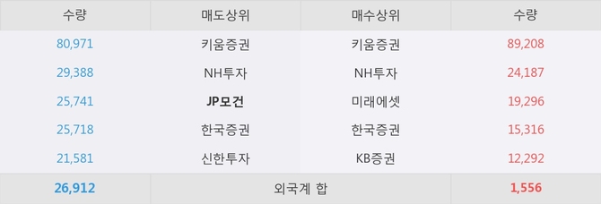 거래원 동향은 NH투자, 미래에셋 등이 매수 상위 목록에 나타나고 있다. 한편, 매도 창구 상위에는 JP모건이 눈에 띄고 있다.