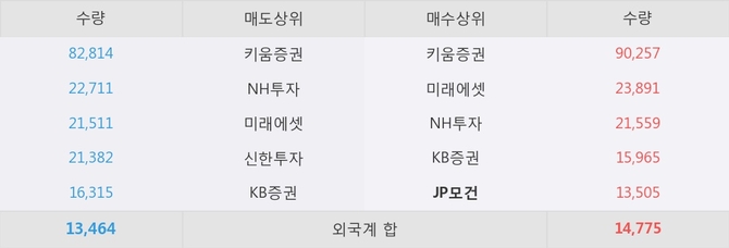 거래원 동향은 JP모건, 미래에셋, NH투자 등이 매수 상위 목록에 나타나고 있다.