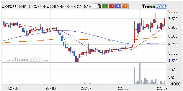 화성밸브는 2021년 매출액 720억원과 영업이익 26억원을 기록했다. 전년대비 매출은 22.1%, 영업이익은 48.6% 각각 상승했다. 이 회사의 매출액 증감률과 영업이익 증감률은 각각 코스닥 상위 35%, 상위 40%에 해당된다.