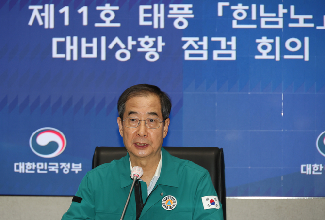한덕수 국무총리는 3일 오후 7시 정부서울청사에서 제11호 태풍 '힌남노' 대비상황 점검회의를 주재하고 모두발언에서 이같이 밝혔다.