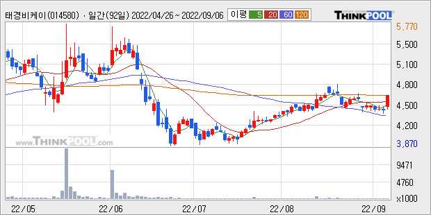 태경비케이의 2021년 매출액은 전년대비 18.0% 늘어난 1952억원이고, 영업이익 또한 전년대비 81.5% 늘어난 196억원을 기록했다. 이 회사의 매출액 증감률과 영업이익 증감률은 각각 코스피 상위 39%, 상위 31%에 해당된다.