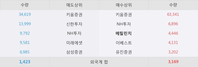 거래원 동향은 메릴린치, NH투자가 매수 상위 목록에 나타나고 있다.