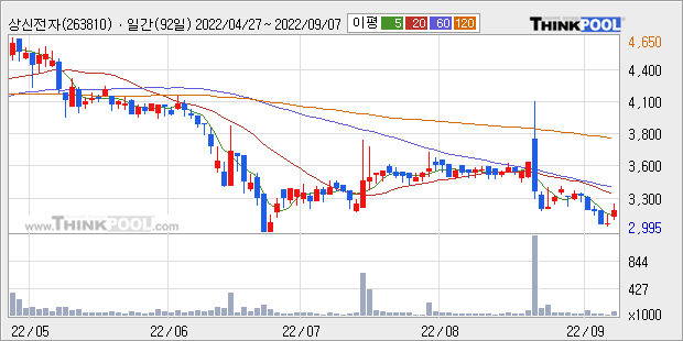상신전자의 2021년 매출액은 전년대비 19.0% 늘어난 1030억원이고, 영업이익은 전년대비 -55.7% 줄어든 14억원을 기록했다. 이 회사의 매출액 증감률과 영업이익 증감률은 각각 코스닥 상위 40%, 하위 22%에 해당된다.