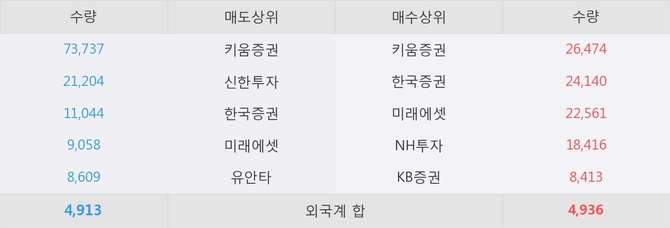 이 시각 주요 거래원은 미래에셋, 키움증권, 신한투자 등이 매도 상위 창구에 자리하고 있다.