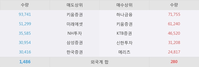 이 시간 키움증권이 매수창구상위에 올라있는 종목은 이 종목 이외에도 에스티큐브, 코미코 등이 있다.