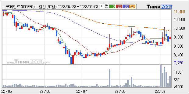 차트상 주가의 흐름은 현재 단기·중기 이평선이 정배열 상태로 전형적인 상승세를 보이고 있다. 이 종목의 차트에서 최근에 최근 5일 매물대 돌파, 삼선전환도(양전환), 주가 5MA 상향돌파 등을 확인할 수 있다