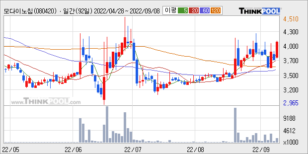 모다이노칩은 2021년 매출액 3995억원과 영업이익 302억원을 기록했다. 전년대비 매출은 -3.1% 하락했고, 영업이익은 16.4% 상승했다. 이 회사의 매출액 증감률과 영업이익 증감률은 각각 코스닥 하위 23%, 하위 49%에 해당된다.