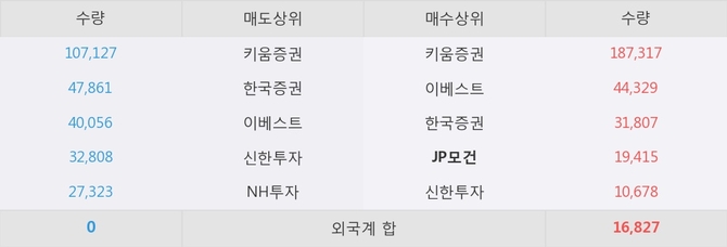 JP모건이 매수상위 창구 4위를 기록중이고, 그 외에 키움증권, 이베스트 등이 매수 창구 상위에 위치하고 있다.