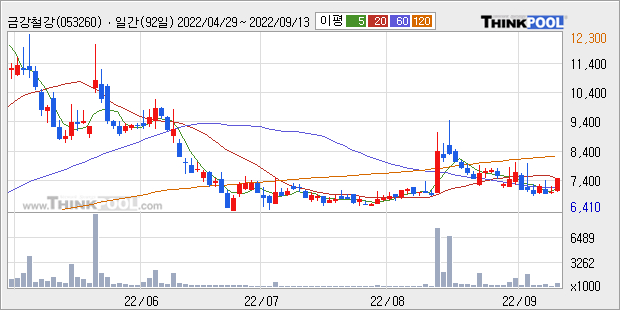 금강철강의 2021년 매출액은 전년대비 34.8% 늘어난 2362억원이고, 영업이익 또한 전년대비 187.9% 늘어난 91억원을 기록했다. 이 회사의 매출액 증감률과 영업이익 증감률은 각각 코스닥 상위 22%, 상위 15%에 해당된다.
