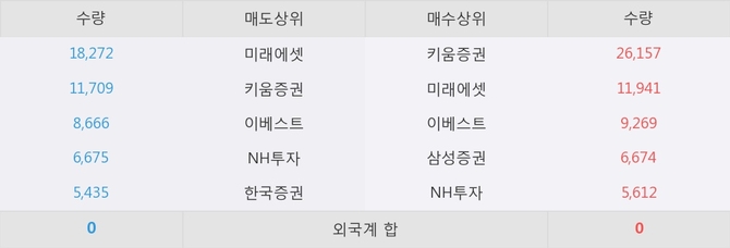 거래원 동향은 미래에셋, 삼성증권, NH투자 등이 매수 상위 목록에 나타나고 있다.