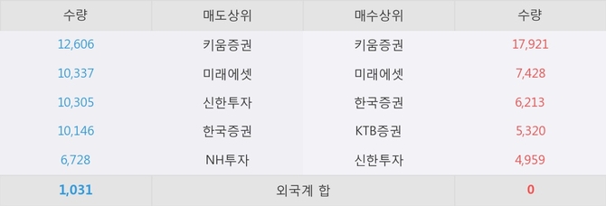 이 시각 주요 거래원은 미래에셋, 키움증권, 한국증권 등이 매수 상위 창구에 자리하고 있다.
