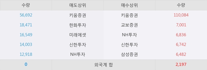 거래원 동향은 NH투자, 삼성증권 등이 매수 상위 목록에 나타나고 있다.