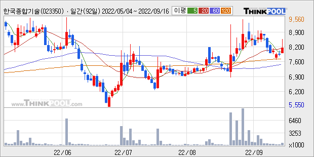 일봉 차트의 모습은 단기 이평선이 역배열을 만들며 조정을 받다가 다시 상승으로 돌아선 모습이다. 최근 이 종목의 차트에서 주가 5MA 상향돌파 등의 특이사항이 발생했다.