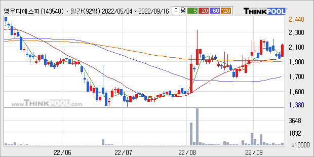 영우디에스피는 2021년 매출액 796억원과 영업이익 85억원을 기록했다. 전년대비 매출은 -21.6% 하락했고, 영업이익은 6.9% 상승했다. 이 회사의 매출액 증감률과 영업이익 증감률은 각각 코스닥 하위 10%, 하위 45%에 해당된다.