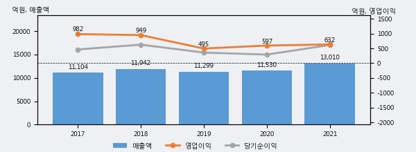 최근 실적을 살펴보면 2021년 매출액이 최근 5년 중 가장 높은 실적을 기록했음을 알 수 있다. 이전 최고 실적이었던 2018년 보다도 8.9%(1068억 6천만원) 늘어난 것으로 나타났다.