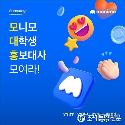 (조세금융신문=송기현 기자) 삼성금융네트웍스는 오늘(19일)부터 다음 달 3일까지 '모니모 대학생 홍보대사' 30명을 모집한다.