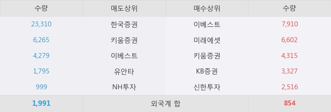 이 시각 주요 거래원은 NH투자, 한국증권, 키움증권 등이 매도 상위 창구에 자리하고 있다.