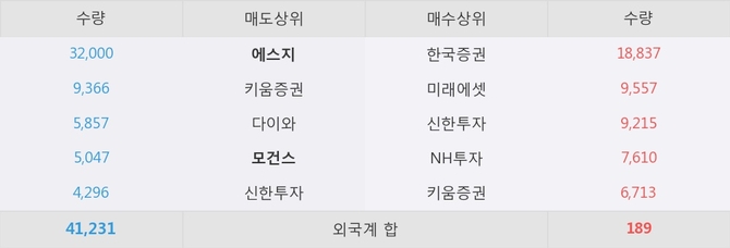 현재 거래원 동향을 보면 에스지와 모건스가 각각 순매도 상위 창구 1위와 4위를 기록하고 있다.