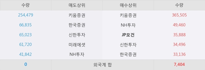 거래원 동향은 JP모건, NH투자가 매수 상위 목록에 나타나고 있다.