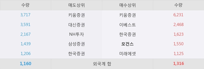 이 시간 모건스가 매수창구상위에 올라있는 종목은 이 종목 이외에도 비에이치, 경동인베스트 등이 있다.