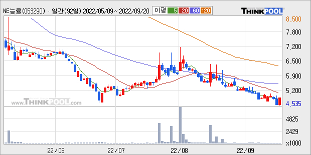 NE능률은 2021년 매출액 778억원과 영업이익 51억원을 기록했다. 전년대비 매출은 3.3%, 영업이익은 102.0% 각각 상승했다. 이 회사의 매출액 증감률과 영업이익 증감률은 각각 코스닥 하위 31%, 상위 25%에 해당된다.
