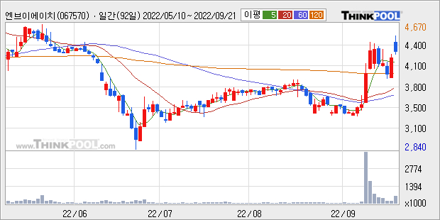차트상 주가의 흐름은 현재 단기·중기 이평선이 정배열 상태로 전형적인 상승세를 보이고 있다.